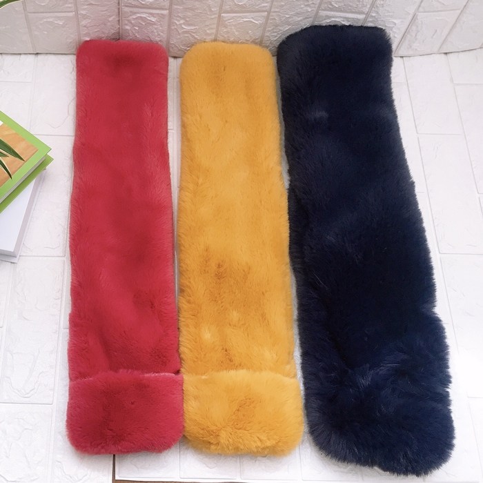 Fake rabbit fur scarfItem No.:KMY20200922Material:100% Polyester Size:10x60cmPacking:1pc/washlabel+Hantag+PE bag